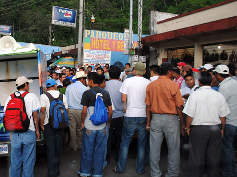 After leaving an hour later than scheduled due to coordinating so many different vehicles and people, we headed the 30 miles or so to the border. The road conditions were fine, and before long we were pulling up to the Mexican side of the border. Our passports were quickly stamped out of the country and it looked like it might be a quick crossing. The last thing we had to do on the Mexican side was to cancel our temporary vehicle importation permits, and upon trying to do this, we were told that we had to go back to Tapachula, with all the vehicles, and cancel the permits there. However, we were assured by the consulate in the US that we would be able to cancel the permits at the border. But no matter how many times we explained this, the border guards were not playing dice!